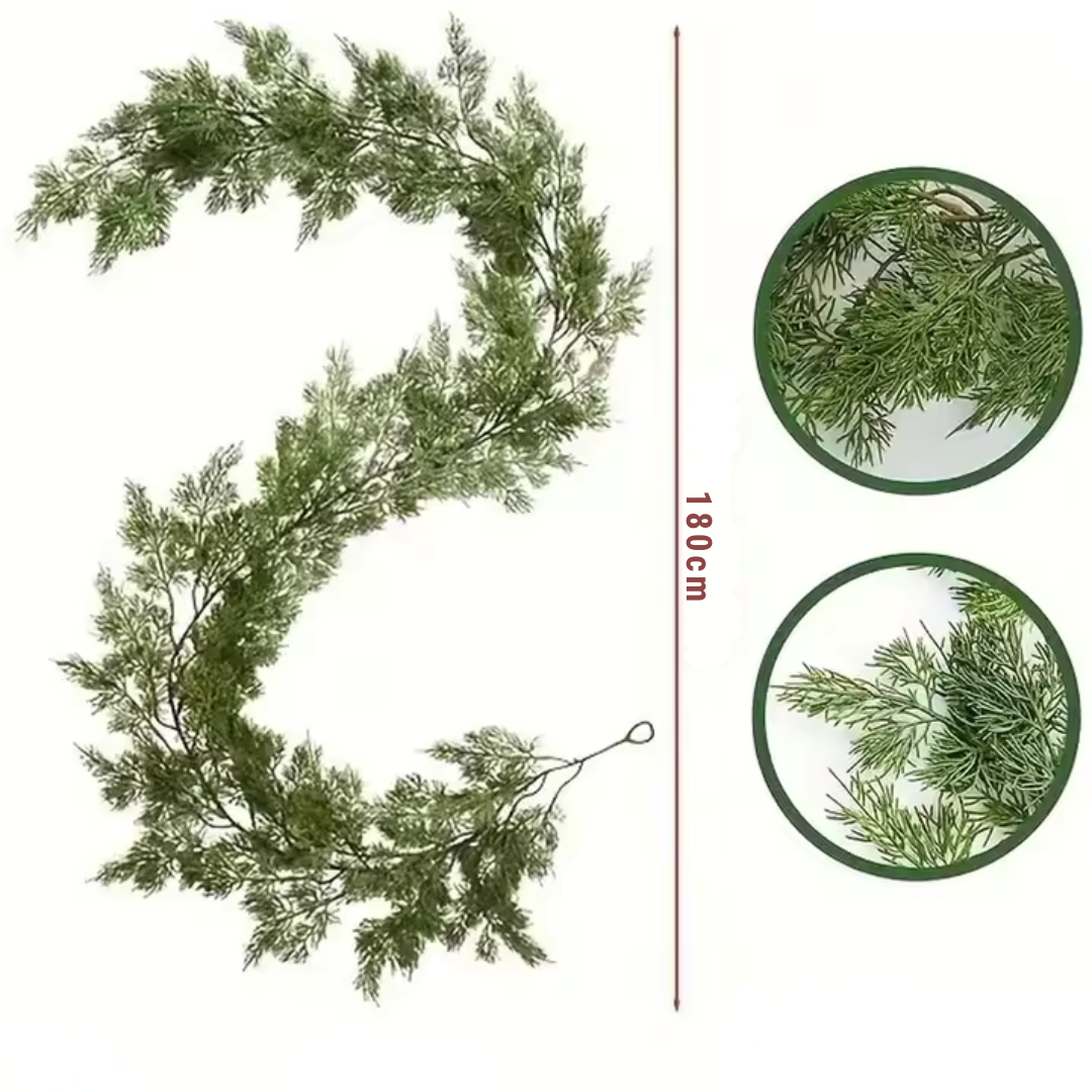 Unsere 1,8 m lange Kiefer Weihnachtsgirlande verleiht jedem Raum festliche Eleganz und natürlichen Charme.